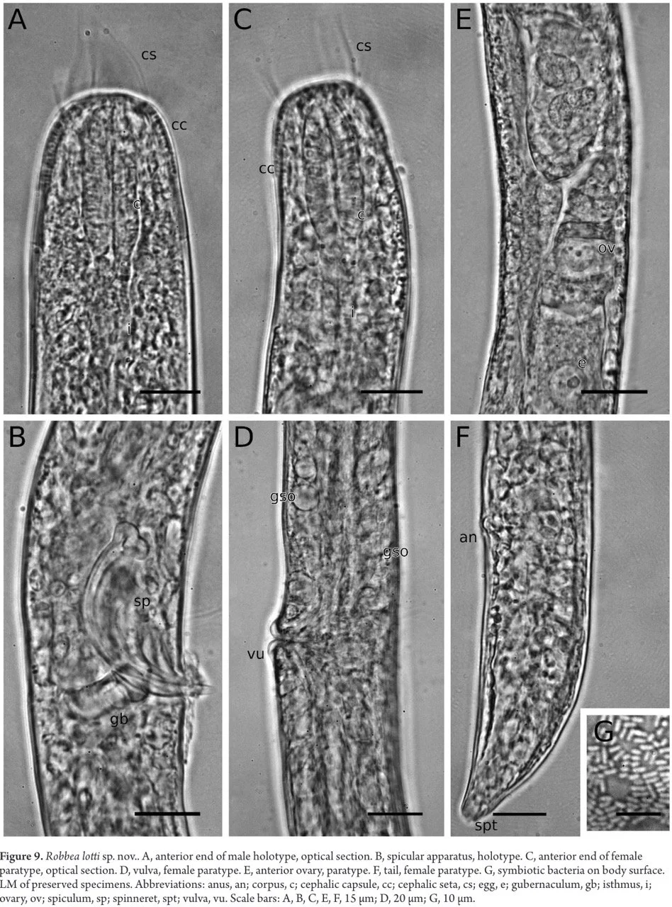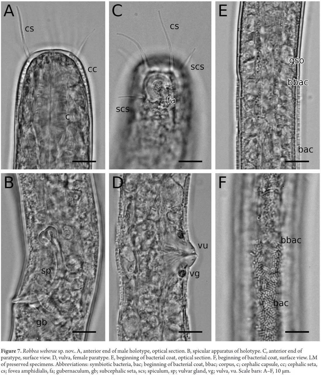 Title of the original publication: Scharhauser F, Saavedra DEM, Pröts P, et al (2024) Revision of the genus Robbea (Stilbonematinae: Desmodoridae), worldwide abundant marine nematodes with chromophoric Fe–Br inclusions and the description of a new stilbonematine genus. Zoological Journal of the Linnean Society zlae005. https://doi.org/10.1093/zoolinnean/zlae005